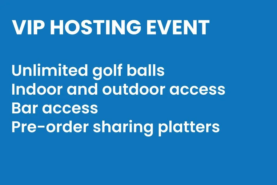 Our VIP hosting areas are tailored to your group including seating / bar leaners along with indoor outdoor access and an endless supply of golf balls